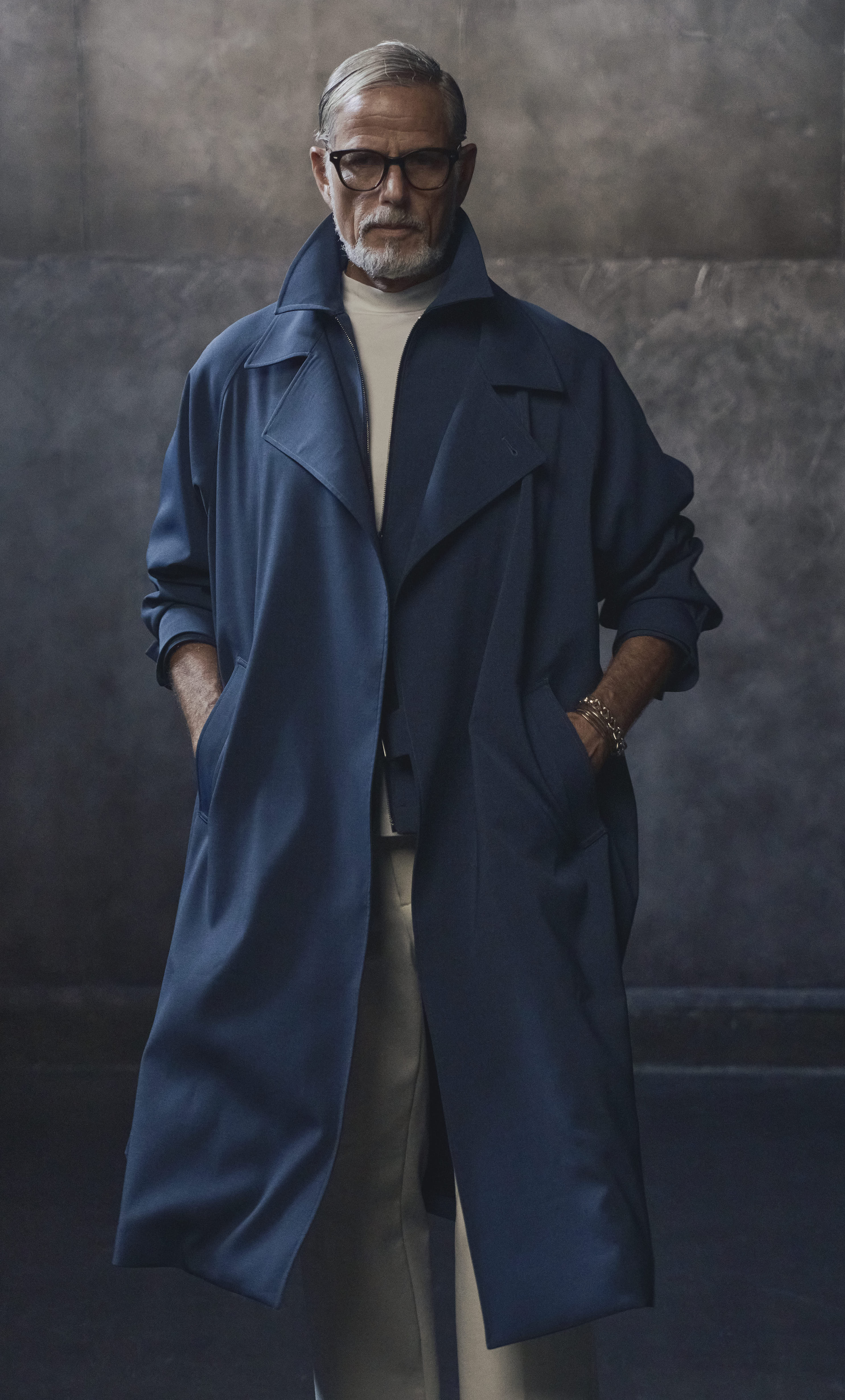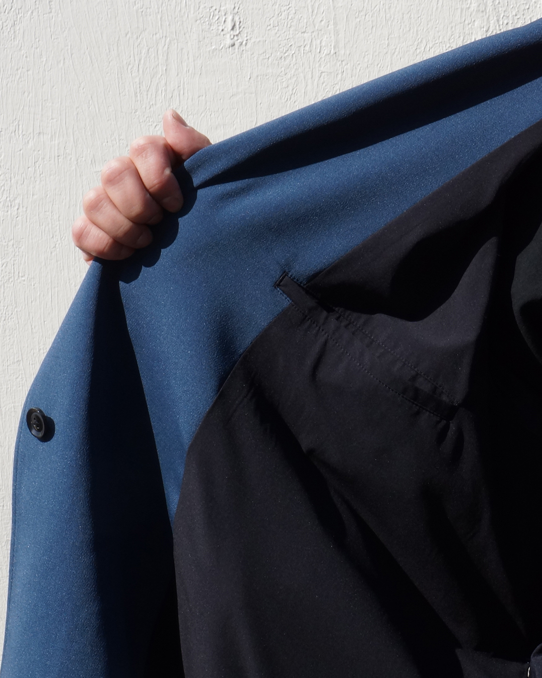 This is a coat that combines the above materials, and is characterised by a soft drape and a loose silhouette.